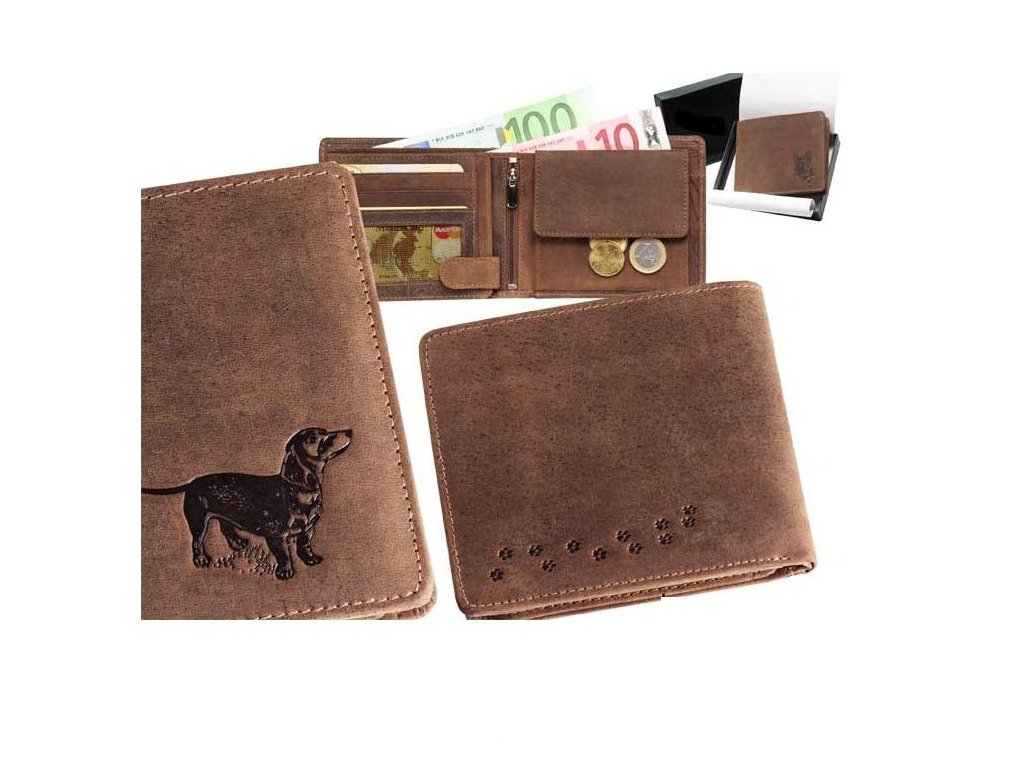 pánská kožená peněženka na šířku "Jezevčík hladkosrstý"