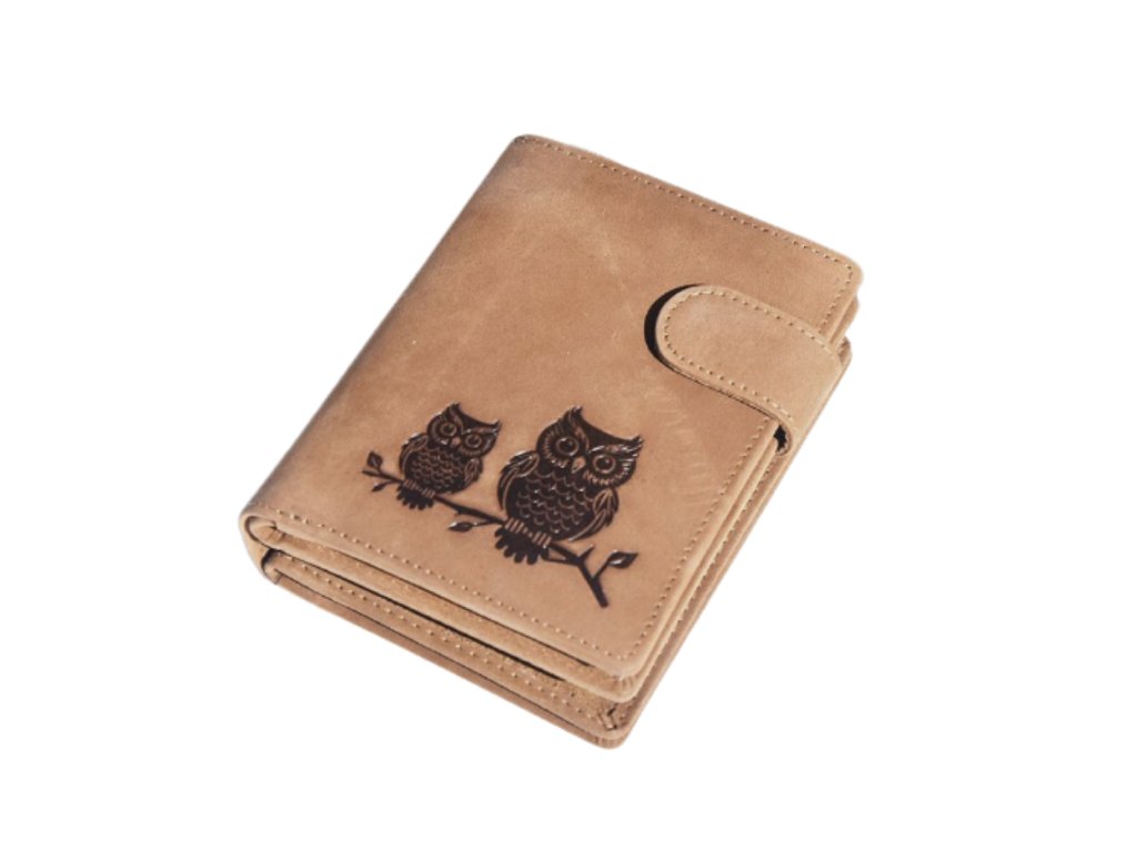 dámská kožená peněženka s přezkou - sovy