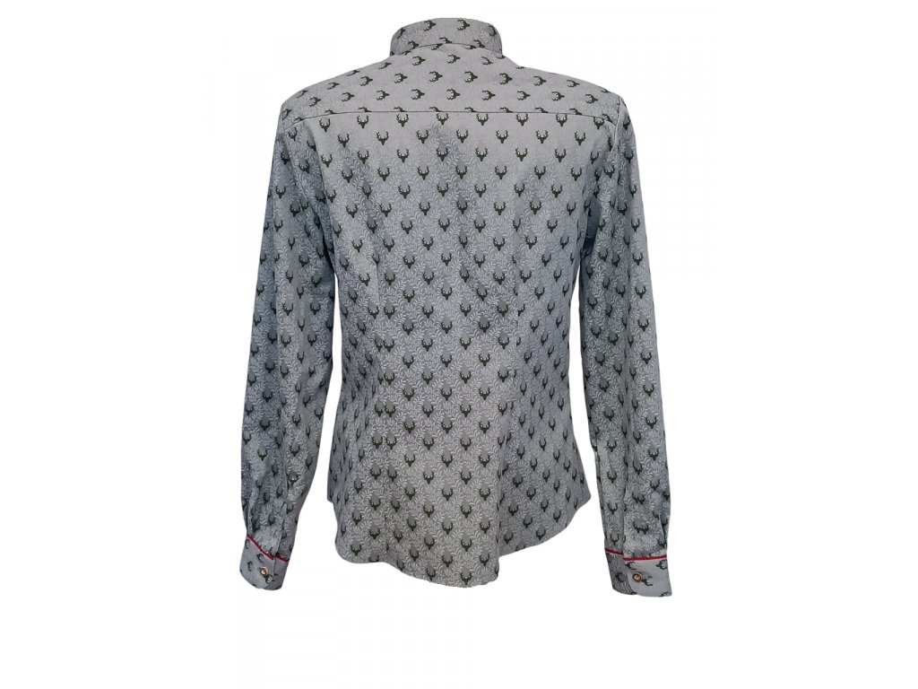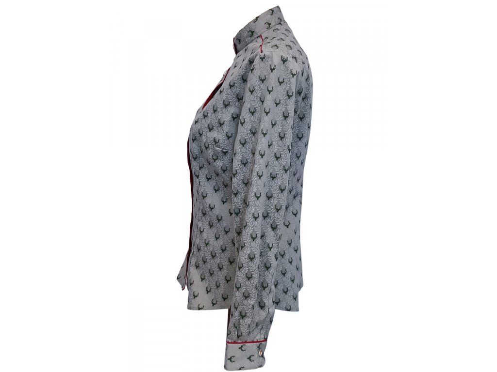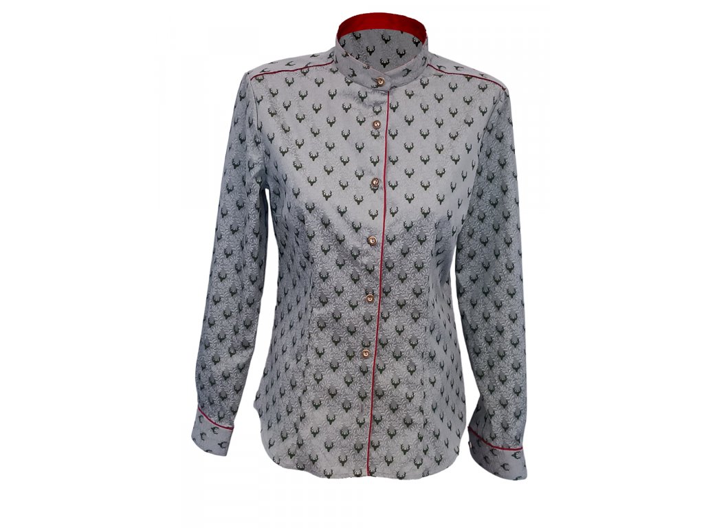 Dámská halenka z bavlněného saténu s motivy drobných hlav jelenů.