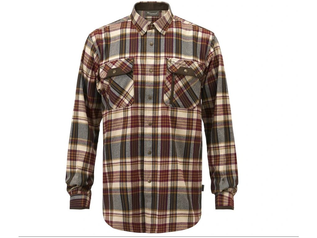 Detaily na kapsách a lemování rukávů je z imitace hnědé kůže. V téže hnědé barvě je vyšité i logo Pinewood na levé kapse. Zapínání košile i kapes je na patenty s logem Pinewood.