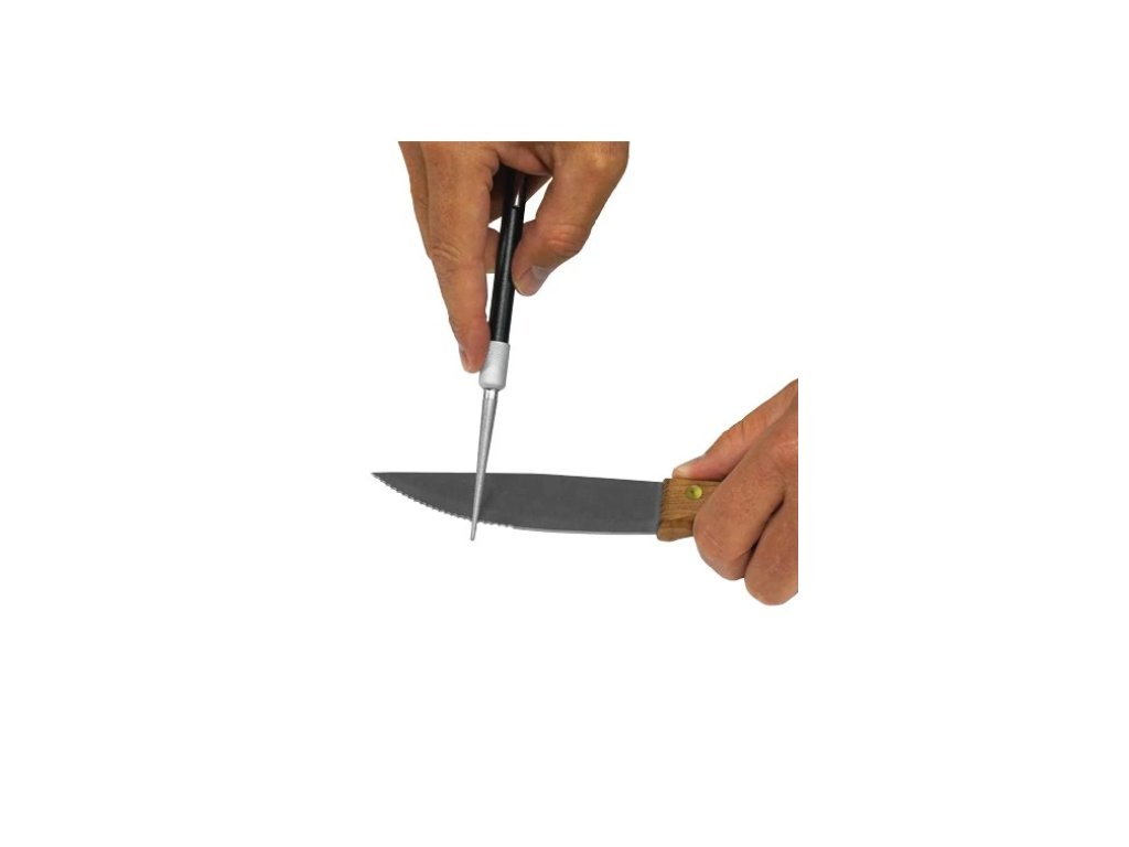 Tento dobře skladný brousek je ideální pomocník v terénu či na cestách. Funguje na všechny druhy nožů a nástrojů – i na ty se zoubkovaným ostřím. Pero obsahuje jednu tyč s diamantovým povrchem.