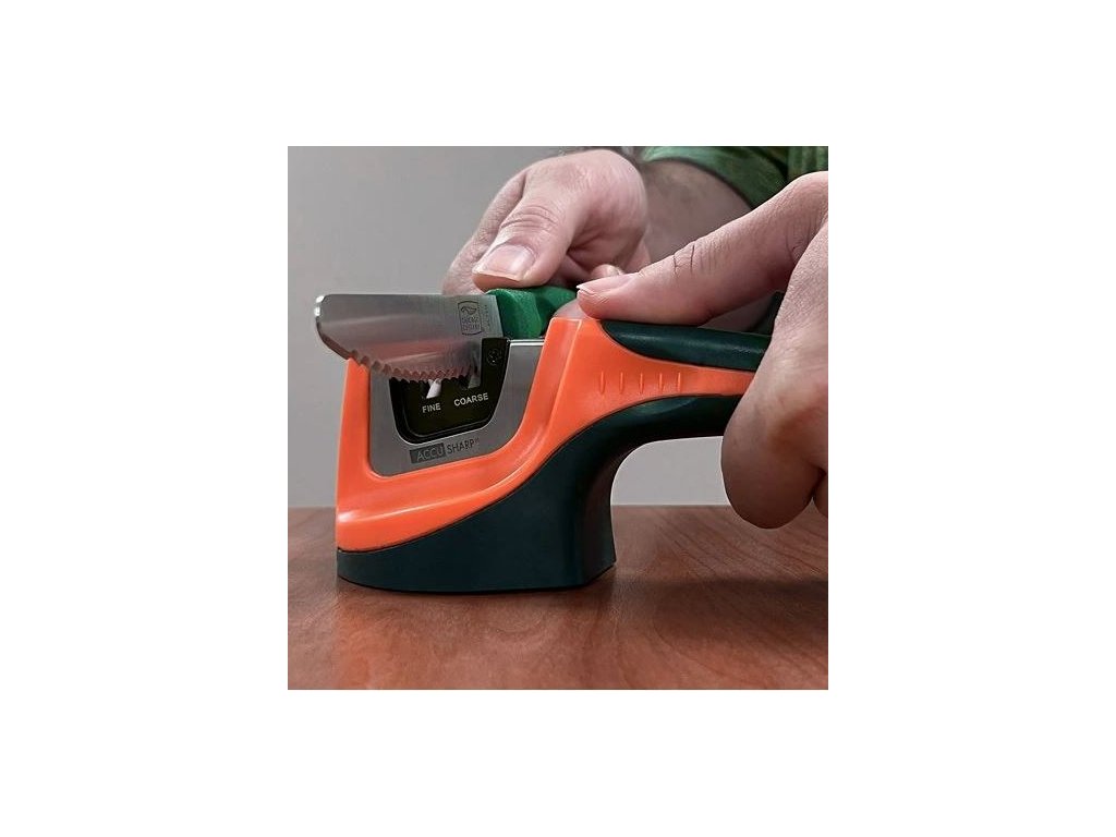Brousek nožů AccuSharp® Pull-Through kombinuje jemný keramický a hrubý karbidový (diamantový) brousek. Masivní, ergonomicky navržená rukojeť s gumovou povrchovou úpravou, poskytuje stabilitu a pohodl při broušení téměř všech typů nožů. Není vhodný pro keramické ostří nožů!