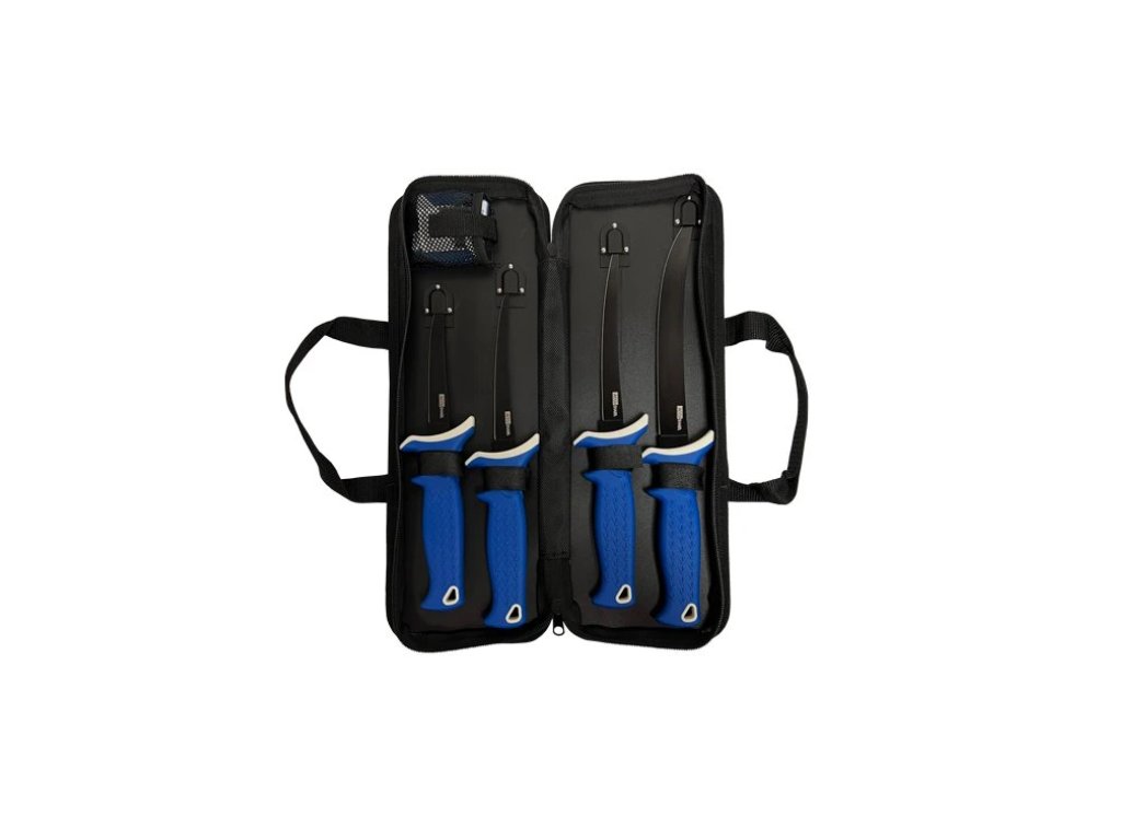 Čepele jsou vyrobeny z nerezové oceli s matnou povrchovou úpravou a následně potaženy titanem pro posílení ostří proti předčasnému opotřebení. Nože jsou ostré a flexibilní, takže snadno kopírují přirozené kontury ryby a krájejí perfektní filety. Protiskluzové rukojeti s motivem rybích šupin mají lisovaný povrch TPR pro bezpečný a pohodlný úchop při manipulaci s noži.