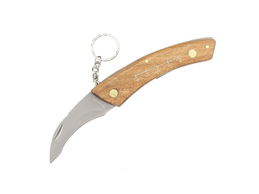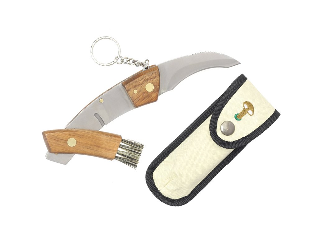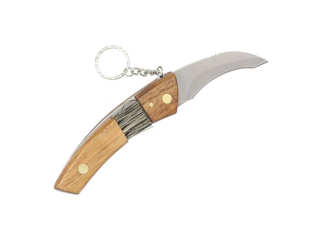 Houbařský zavírací nůž Albainox s vyklápěcím štětečkem. Dřevěná rukojeť je opatřena mini měřítkem do 4 cm.
