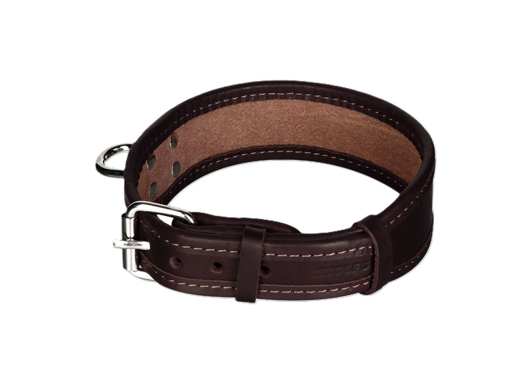 Robustní barvářský obojek vyrobený z prémiové hydrofobní kůže, vhodný pro větší plemena psů.