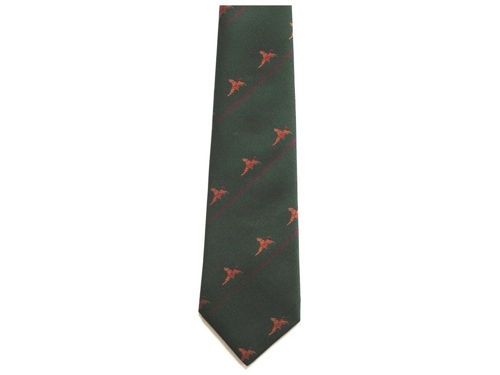 Vázanka HEDVA s mysliveckým motivem tetřeva v letu. Kravata se hodí ke klasickému límečku košile či k širší klopě u saka.