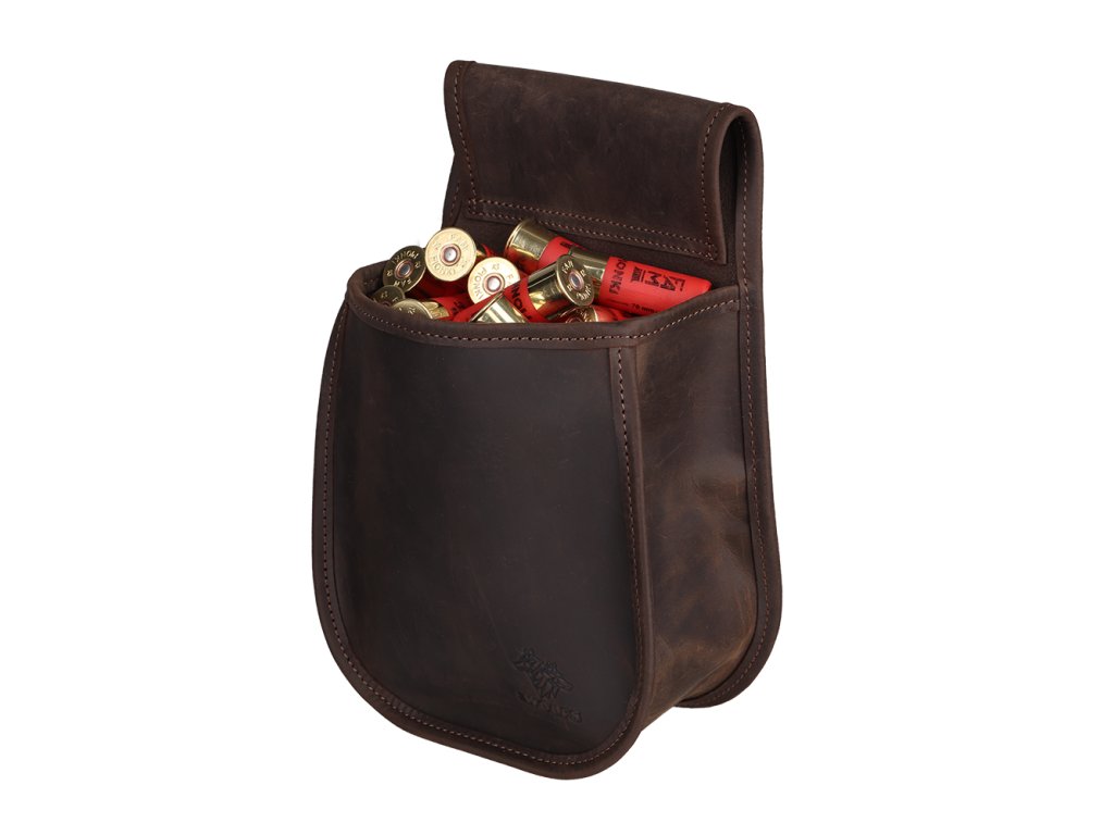 Kožená brašna na náboje pro sportovní brokovou střelbu. Brašnu je možné připevnit pomocí opasku.