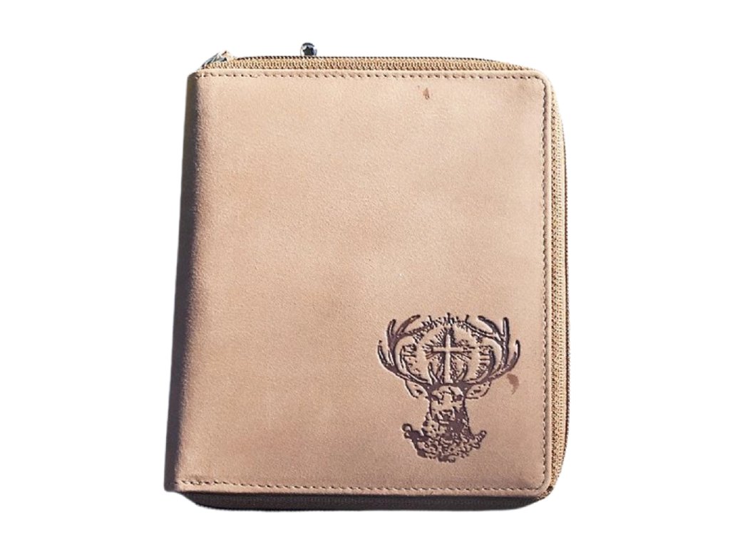 Pánská peněženka z broušené hovězí kůže s loveckým motivem.