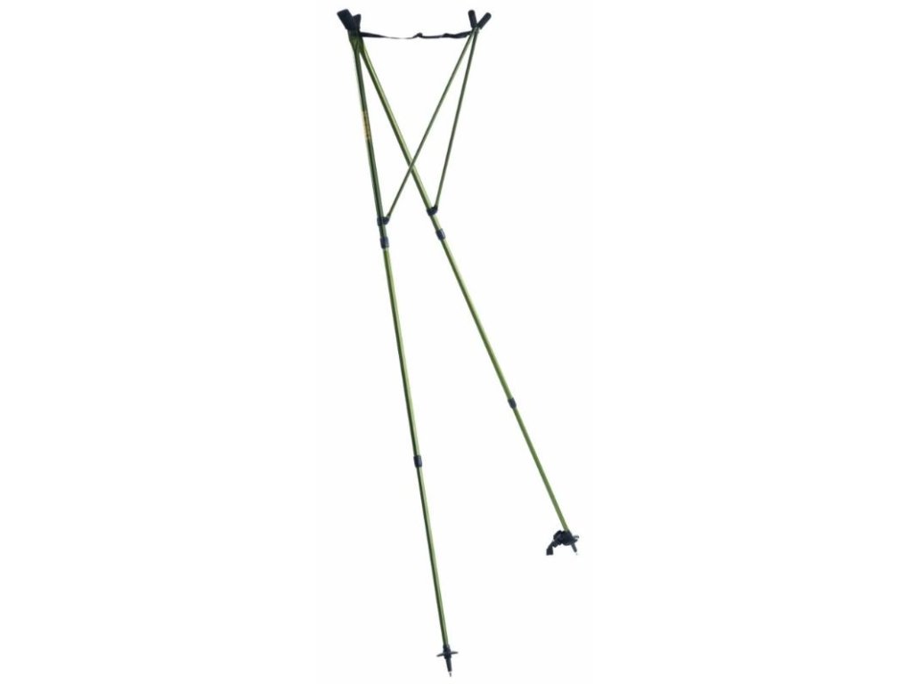 Hůl je stabilní díky teleskopickým nohám, plastové kroužky s hroty na spodní části zabraňují uklouznutí nohy hole, takže se můžete plně soustředit na cíl a lov.