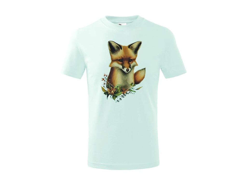 Dětské bavlněné tričko mentolové barvy s malovaným obrázem lišky.