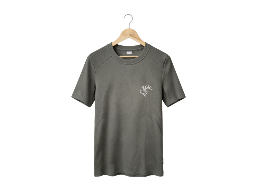 Tričko s krátkým rukávem s drobným potiskem siluety divočáka. Tričko je vyrobeno v České republice z kvalitního stálobarevného materiálu, který má speciální voduodpudivou, oleofóbní a teflonovou úpravu - zabraňuje ulpívání nečistot, usnadňuje údržbu a praní, zajišťuje vysokou odolnost proti otěru, přičemž zajišťuje prodyšnost, jemnost i trvanlivost materiálu.