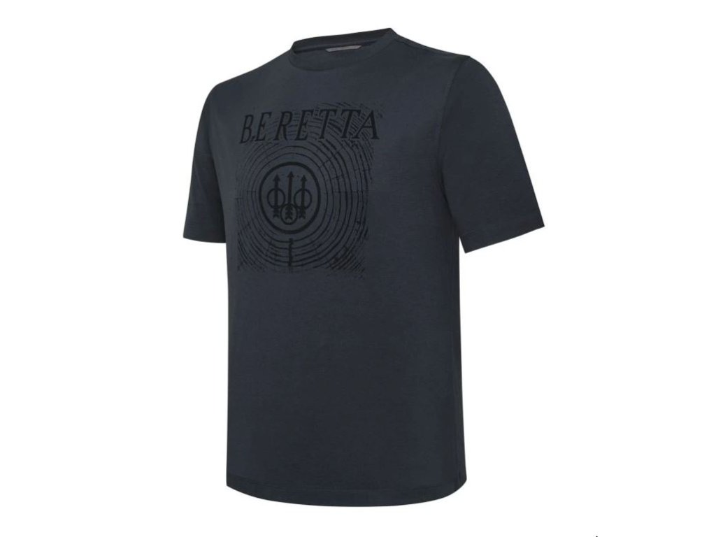 Pánské bavlněné tričko s logem Beretta přes téměř celý přední díl v tlumených tónech ebenového dřeva. Loga Beretta je i přes svoji velikost nepříliš výrazné a tričko je tak vhodné i pro odpůrce nápisů a obrázků na tričkách. Drobnější vyobrazení loga je také na zadním díle hned pod průkrčníkem. Tričko je vyrobené z bavlny 180g/m2.