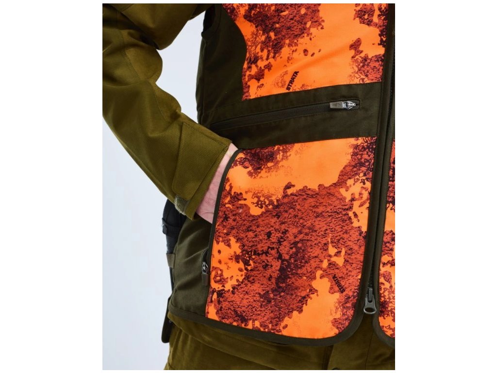 Velmi praktická a pohodlná pánská vesta pro lovce a ošetřovatele psů. Vesta má zadní kapsu a vertikálně zipované kapsy na ruce pro snadný přístup k výbavě. Velké přední kapsy s horizontálními zipy obsahují D-kroužky a držáky na náboje. Součástí je také vnitřní kapsa na zip pro cennosti a kapsy na rádio se suchými zipy, které udrží anténu na místě s otvorem na kabel na krku.